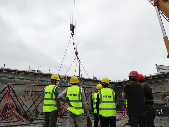 6.为确保.新疆加油站球形网架安装顺利,应有详细的新疆施工组织设计。网架安装必须保证结构的稳定性和不产生的附加变形。